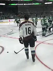 At the 2015 NHL Entry Draft, Zadorov was traded as a central piece by the Sabres in a package that also included Mikhail Grigorenko, J. T. Compher and the 31st pick in the draft to the Colorado Avalanche in exchange for Ryan O'Reilly and Jamie McGinn on 26 June 2015.[21] Upon learning about the trade, Zadorov said he was happy since he "knew about this organization...it’s always nice to play for a GM who’s actually been here and knows what it’s like for the players when you’re playing and working hard."[22] He began the season with the team but was reassigned to their American Hockey League (AHL) affiliate, the San Antonio Rampage, in order to improve his game. When speaking of the decision, General Manager Joe Sakic said "for a young man in that position, he needs to play a ton and work on his confidence. He’ll go down and play as much as he can and keep learning that way. The only way you can get better is by playing a lot at a young man’s age."[23] At the time of his reassignment, he had recorded two assists in 11 games and been a healthy scratch for four consecutive games.[24] Zadorov remained in the AHL until he earned his first recall on 13 January alongside Chris Bigras after Nate Guenin was placed on waivers.[25] His stay in the NHL was short-lived, however, as he was reassigned to the Rampage on 23 January after Erik Johnson was activated from injured reserve.[26]