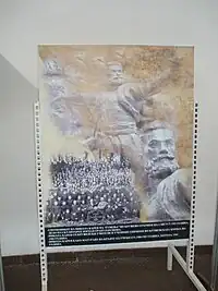 Karev's remains were buried in Rajčani, a village nearby the locality he was killed. In 1953, on the 50th anniversary of the Ilinden Uprising, they were transferred to his hometown Kruševo.[42] In 1990, they were transferred to the nearby monument, called Makedonium.[39]
