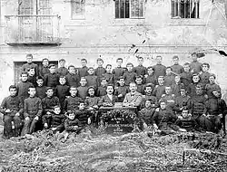 His two brothers, Petar and Georgi also participated in IMRO.[26] During the First and the Second World Wars, when Vardar Macedonia was annexed by Bulgaria, they supported the Bulgarian authorities.[27] After World War I, both were abused when the area was returned to Serbian administration. During the Second World War, Georgi was a Mayor of Krusevo. After 1944 they were imprisoned as Bulgarian fascists' collaborators in Communist Yugoslavia, where both died in the internment camp of Idrizovo in 1950 and 1951 respectively.[28] Nikola's nephew Mihail, the son of Georgi, was also imprisoned on a charge of "opposing the idea of Communist Yugoslavia".[29]