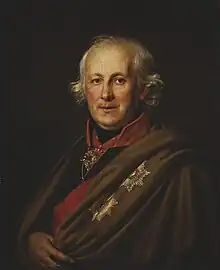 Count Nikolay Semyonovich Mordvinov (Russian: Николай Семёнович Мордвинов; 17 April 1754 – 30 March 1845) was one of the most reputable Russian political thinkers of Alexander I's reign. He is associated with the reforms of Mikhail Speransky, who he advised on the ways to improve the performance of the national economy.