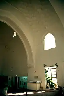 Interior view looking towards the central hall from the eyvan, showing the stalactite vault of the first dome and the great arch that separates the two rooms
