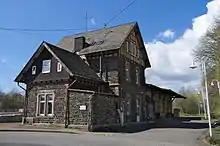 The entrance building of Nistertal-Bad Marienberg station, including an attached freight shed, was built to a standard design in around 1885. The station is located at Bahnhofstraße 2. The entrance building of Nistertal-Bad Marienberg station is a listed as a cultural monument under the Rhineland Palatinate Monument Protection Act (Denkmalschutzgesetz).