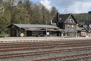 Nistertal-Bad Marienberg station[4] (formerly: Erbach) is, along with Büdingen (Westerw) station, one of two rail stations in the municipality of Nistertal in the Westerwald and the German state of Rhineland-Palatinate. The station is located at line-kilometre 42.4 on the Limburg (Lahn)–Altenkirchen (Westerw)–Au (Sieg) railway (also known as the Oberwesterwaldbahn or Upper Westerwald Railway). From 1911 to 1971, the Erbach–Fehl-Ritzhausen railway branched off the Upper Westerwald Railway here.