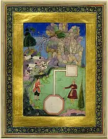The Khamsa was a popular subject for lavish manuscripts illustrated with painted miniatures at the Persian and Mughal courts in later centuries. Examples include the Khamsa of Nizami (British Library, Or. 12208), created for the Mughal Emperor Akbar in the 1590s.