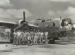 From June 1944, at Leyburn, Queensland, the squadron converted to Consolidated B-24 Liberator heavy bombers.[7] Conversion training took six months and as a result, the unit did not see operational service again until 11 January 1945,[9] when, as part of No. 82 Wing RAAF,[10] it attacked targets at Laga and a radio station at Moena Island, operating out of Fenton.[8] During January and February more than a hundred missions were flown against Japanese targets.[3] On 6 April, near Koepang,[3] along with Liberators from No. 24 Squadron, the squadron attacked a convoy of ships including the cruiser Isuzu. The attack proved unsuccessful.[9] Other targets attacked included troop areas at Tawo and fuel tanks in Tarakan and Borneo. From July, while the main force remained at Fenton, the squadron sent a detachment to Morotai Island. In the final months of the war the squadron's last operations were concentrated around supporting the Allied landings at Labuan and Balikpapan.[3]