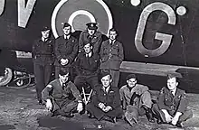 ![]() Some of No. 460 Squadron RAAF's ground crew posing in front of the Avro Lancaster bomber G for George at RAF Binbrook, May 1944 | |