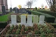 CWGC graves in Spanbroek, North Holland, of five members of 625 Squadron who died in June 1944