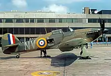 It was reformed on 22 March 1937 by splitting off "B" Flight of No. 32 Squadron at RAF Biggin Hill, equipped with Gloster Gauntlet biplane fighters.[4] It received more modern Hawker Hurricane fighters in November 1938, retaining these aircraft when the Second World War began. It claimed its first success on 21 November 1939, when it shot down a Dornier Do 17 over the English Channel. As the Battle of France intensified, it was deployed to Merville, operating over France for ten days, claiming 25 German aircraft.[2] During the Battle of Britain the squadron operated from Biggin Hill and RAF Hawkinge in July, being moved to RAF Acklington in Northumberland for a rest before returning to Biggin in August.[2]