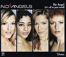 Selected as the album's leading single by the group's records company, physical singles of "No Angel (It's All in Your Mind)" were issued on 22 April 2003 by Cheyenne Records.[2] The maxi single includes several remixes of the song, including a Video Mix and a Rock Version, as well as two versions of the band's rendition of Dutch rock band Shocking Blue's 1969 song "Venus."[2] Written by Robbie van Leeuwen and produced by frequent collaborator Thorsten Brötzmann, No Angels initially recorded "Venus" for the commercials of Gillette's Women Venus Passion razors division.[3] Critical reception towards "No Angel (It's All in Your Mind)" was generally positive, with CDstarts calling it "very best radio feed."[4]