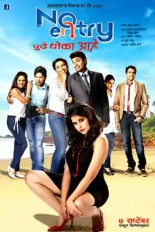 No Entry Pudhe Dhoka Aahe (transl.No entry, Danger ahead) is a 2012 Indian Marathi comedy film released on 7 September 2012.[1] The film was directed by Ankush Choudhary and produced by Prem Rajagopalan and Nikhil Saini. The film stars Ankush Choudhary, Bharat Jadhav, Aniket Vishwasrao, Kranti Redkar, Manwa Naik, Sai Lokur, pandarinath kamble and Sai Tamhankar. It is a remake of 2002 Tamil film Charlie Chaplin.