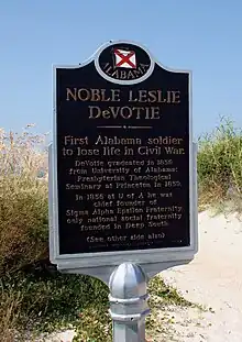 Noble Leslie DeVotie (January 24, 1838 – February 12, 1861) was a Baptist minister, Confederate chaplain, and the lead founder of Sigma Alpha Epsilon, a national fraternity.
