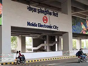 The Noida Electronic City is a metro station on the Blue Line extension of the Delhi Metro, in the city of Noida in India. It lies on the east extreme end of Blue Line extension of the Delhi Metro. It is surrounded by several software companies and the institute Jaypee Institute Of Information Technology. It serves the sub-cities of Indirapuram and Noida.