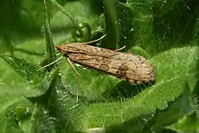 Nomophila nearctica, the lucerne moth, clover nomophila, false webworm, celery stalkworm or American celery webworm, is a moth of the family Crambidae. It is known from southern Canada and all of the United States, south to Mexico and the Neotropics.