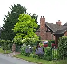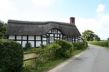 Several buildings in the civil parish are listed at grade II, the lowest of the three grades.[22] The oldest listed building may be Stokes Cottage in Swanwick Green, a timber-framed longhouse with brick infill and a thatched roof; it dates from the 16th or early 17th century.[23] Another candidate is Brook Farmhouse in Gauntons Bank, part of which originally dates from the late 16th century, and was subsequently extended several times. The original building is timber framed with brick infill and a tiled roof.[24]