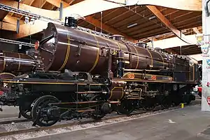 The 3.1102 is preserved at the Cité du Train in Mulhouse[4] without its tender, and still sectioned, as it was for the Exposition Internationale in 1937. It is presented with a conventional fire-tube boiler; and to illustrate how it functions, various parts are traversed by luminous fibres.