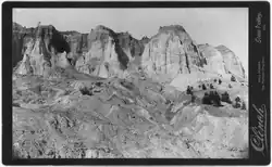 The North Bloomfield Mining and Gravel Company was owned by 30 investors from San Francisco, led by railroad baron Lester I. Robinson, and William Ralston, a silver miner from Sun Mountain in Nevada.[4] The company's water rights were the same watershed as Summit Water and Irrigation Company's but lower down on Canyon Creek. The principal reservoir was at Bowman Lake, while others included Crooked, Island, Middle, Round, English/Rudyard, Sawmill, and Shotgun Reservoirs. The company's main canal was the Bloomfield Ditch, but, according to Superintendent L.L. Meyers, only a small fraction of the ditch's water was used for irrigation and most was used for mine operations.[5]