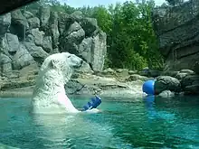 The North Carolina Zoo is home to 1,700 animals of more than 200 species. It is home to one of the largest chimpanzee troops of any zoo in America[15] as well as the largest collection of Alaskan seabirds in the country. The Zoo is also one of only a few AZA (Association of Zoos & Aquariums) in the U.S. with a breeding pair of polar bears which is part of the Species Survival Plan. As of 2022, the pair have yet to produce any offspring.