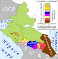 North Caucasus Krai (Russian: Се́веро-Кавка́зский край, Severo-Kavkazskiy kray) was an administrative division (krai) within the Russian Soviet Federative Socialist Republic of the Soviet Union. It was established on 17 October 1924. Its administrative center was Rostov-on-Don until 10 January 1934, Pyatigorsk until January 1936, then Ordzhonikidze (today Vladikavkaz) and, from 15 December 1936, Voroshilovsk (today Stavropol).