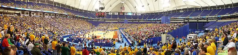 The 14th-seeded Bison played the defending national champion and 3rd-seeded Kansas Jayhawks in Round 1 of the 2009 NCAA Tournament, held in Minneapolis, Minnesota. The game had an estimated 10,000 NDSU fans in attendance in the Bison 84–74 loss.[1]