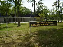 In the 2010-2011 school year, NFISD opened the Ninth Grade Center at the former Oak Village Middle School campus.[6] It opened under the direction of the Texas Education Agency (TEA)-appointed manager George McShan.[7] The Ninth Grade Center housed newly arrived ninth graders. People repeating the ninth grade attended the main campus of North Forest High School.[6]