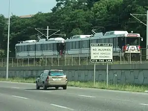 North Hanley station is a St. Louis MetroLink station.[5] Opened in 1993 near the North Hanley overpass of Interstate 70, it is primarily a commuter station with 1,731 park-and-ride spaces, including 657 in a garage, and a major bus transfer center in North St. Louis County.