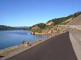 The North Idaho Centennial Trail is a 24 miles (39 km) paved trail in Idaho used for transportation and recreational activities. Extending from Higgens Point on the northeast side of Lake Coeur d'Alene, a popular place for bald eagle watchers in early winter, the trail follows the lake's north shoreline to the Spokane River where it follows it to the Idaho/Washington border.[1] On the other side of the state border, the trail becomes the Spokane River Centennial Trail and extends for another 37 miles (60 km) out to Sontag Park in Nine Mile Falls, Washington. The trail passes through the towns of Post Falls, Idaho and Coeur d'Alene, Idaho.