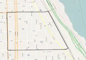 It includes the 4500-block of South Berkeley, as well as surrounding historic structures in an area bounded by 43rd Street, 47th Street, Cottage Grove, and the Illinois Central Railroad tracks.[1]