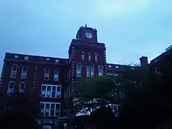 The North School is located in Portland's East Bayside India Street neighborhood, on the southeast side of Congress Street, just west of the Eastern Cemetery. It is a three-story brick building with Italianate styling. A four-story tower projects from its southwest-facing front facade, capped by a square turret with clock. Windows in the tower are predominantly tall round-arch windows, while windows elsewhere are in part similar, with some replaced by bands of rectangular sash. When built, the building also had a mansard roof; this was removed in 1920-22, when the windows were also altered.[2]