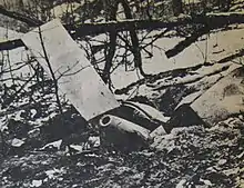 Because a great deal of wreckage had fallen over a wide area as the aircraft plunged, investigators first suspected that two planes had collided. One of the Electra's wings and its two engines were found about five miles (8.0 km) from the fuselage impact. State police faced great difficulty reaching the main crash site because of the area's thickly wooded, steep hills and a scarcity of roads in the vicinity. Rescuers discovered a scene of devastation with no survivors. A policeman at the scene remarked: "We haven't really found anything that you could count a body."[3] Some victims were identified by dental records, but most were never positively identified.[4] Hours after the crash, smoke still rose from the crater caused by the impact, which was about 25 ft (7.6 m) deep and 40 ft (12 m) wide.[3]