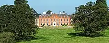 Buckenhill Manor (grid reference SO658565), 1 mile (2 km) north from Bromyard, off the B4203 road, and dating to about 1730, is a two-storey with attic red brick house. The front face is of nine bays, the central three within a central pedimental gable. The attic floor is surrounded by a Victorian brick parapet where the two external three-bay windows are set within gabled dormers topped with finials. Inset from the parapet is the slate hipped gable roof. There are nine 18-pane sash windows on the first floor, and eight, four each side of the main entrance, on the ground floor. The central 9-pane central door with fanlight is set within a porch comprising a arched broken pediment and corinthian columns, set on three semi-circular steps. On left hand (south-west) return is a five-sided two-storey rendered stone wing with a crenellated parapet. Part of the structure at the rear contains a 19th-century tower with lantern. In the late 19th century Buckenhill became a boys home which was affiliated to Barnardo's, housing 47 older boys who were taught farm work before emigration to Canada. It was a hotel during the 1930s, and was the main accommodation for Westminster School during the Second World War. In 2020, the house was on the market for £2,000,000, the same year available for monthly rental, and following this, catered for bed & breakfast.[33][34][35][36][37][38][39][40]
