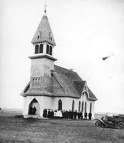 The Norway Lutheran Church and Cemetery was located 10 miles from south of Denbigh, North Dakota and were listed on the National Register of Historic Places (NRHP) in 1994. The NRHP listing includes the main church structure, a cemetery, and two contributing privies to the west and rear of the church, all situated on a 4.4 acres (1.8 ha) site. A pyramid-shaped monument topped with an iron cross is located at the northeast corner of the cemetery and marks site of an older log church. Norwegian skier Sondre Norheim was buried in the cemetery in 1897.[1][2]