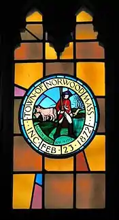 - ↑ It was suggested in 2006 that Guild's red coat must surely be historically inaccurate.Peter Schworm (2006-10-01). "He was a patriot, not a redcoat: Calls growing for new, accurate town seal". The Boston Globe. Retrieved 2006-10-06.: "Board chairman Jerry Kelleher said he, too, had noticed Guild's miscolored garment... He knew the red wasn't right." He said that "While the controversy has been 'mushrooming,' it's more a minor distraction than an embarrassing gaffe." Elisabeth McGregor, executive director of the Norwood Historical Society, said she found the flap "kind of comical", and noted the seal probably includes another mistake. 'It's April 19—would he really be plowing already?' she questioned. 'Seems pretty early.'"