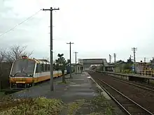 - ↑ 駅 別 運 輸 実 績 [Station passenger figures (Fiscal 2015)] (PDF) (in Japanese). Japan: Ishikawa Prefectural Government. 2016. Retrieved 2 January 2018.
