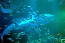 In 2010, captivity whale sharks in the panoramic fish tank of the new facility "Blue World" is started and aquariums have captivity to this day.[1][4] also captivity large pelagic fish such as bluefin tuna. In the winter season after 2013, aquariums installed multiple kotatsu in front of the fish tank of "Blue World" and adopted a system to observe fish while warming the body.[5] Nine days after the 2024 Noto earthquake, a male whale shark at the attraction died which officials attributed to equipment damage leading to poor living conditions in the tank.[6] The next day, a female individual is also found to be dead.[7]