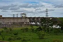 The Nova Avanhandava Dam is an embankment dam with gravity sections on the Tietê River about 8.5 km (5.3 mi) southwest of Buritama in São Paulo state of Brazil. It supports a 347.4 megawatts (465,900 hp) hydroelectric power station. The dam was completed in 1982 and its three 115.8 megawatts (155,300 hp) Kaplan turbine-generators were commissioned by the same year. It is owned and operated by AES Tietê. The dam also provides for navigation with two ship locks.[1]