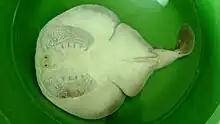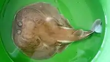 The numbray or spottail sleeper ray (Narke dipterygia) is a species of electric ray in the family Narkidae. It may be found in shallow muddy estuaries or offshore depths. It is a weak swimmer that lies on the bottom, commonly buried. It eats small marine invertebrates and fish. It pounces on its prey and wraps its body around its prey, killing or stunning it with electrical shocks.[2] It has been observed that Numbrays are not as common as other types of rays in the area around the Indian Ocean. This can be attributed to the relatively large doubling time for a population, reaching up to 18 years.
