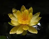 The flowers extend above the water surface.[3] The flowers are larger than flowers of Nymphaea mexicana, and more yellow than Nymphaea odorata flowers. Fruits are unknown.[4]