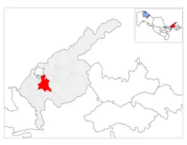 Oʻrtachirchiq is a district of Tashkent Region in Uzbekistan. The capital lies at the city Nurafshon, itself not part of the district.[1] It has an area of 460 km2 (180 sq mi)[2] and it had 142,500 inhabitants in 2021.[3] The district consists of 4 urban-type settlements (Tuyaboʻgʻiz, Kuchluk, Qorasuv, Sholikor) and 13 rural communities (Angor, Qumovul, Qorasuv, Oq ota, Haqiqat, Navoiy nomli, Yoʻngʻichqala, Paxtaobod, Paxtakor, Oʻrtasaroy, Istiqbol, Yangi turmush, Uyshun).[1]