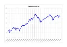 The OMX Stockholm 30 (OMXS30) is a stock market index for the Stockholm Stock Exchange. It is a capitalization-weighted index of the 30 most-traded stock on the Nasdaq Stockholm stock exchange. The index started on 30 Sep 1986 with a base value of 125.[1]