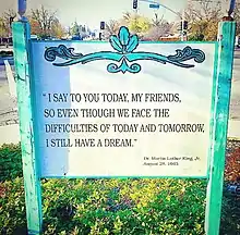 A permanent sign at the southeast corner of Martin Luther King Jr. Blvd. and 14th Ave. displaying a famous quote from Martin Luther King Jr.’s I Have a Dream speech