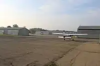 The airport has a fixed-base operator that offers fuel, hangars, courtesy and rental cars, conference rooms, a crew lounge, and more.[5]