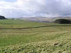 The fort is on a small flat-topped knoll on the south side of the Ettrick Valley; there are good views to the north and west. The Eildon Hills, 9 miles (14 km) to the north-east, can be seen, near the site of the Roman fort at Newstead, so that communication by visual signals between the forts would have been possible.[2]