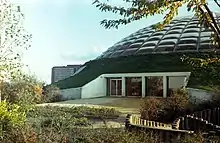 In December 2021, part of the building was given Grade II listed status.[1] The domed swimming pool and the earthen bank were included in the listing, while the waterslides, launch tower and splash pool, the linking entrance block and the service structures attached to the south side were not.[8] Historic England stated that the leisure pool, the fourth of its type to be built in England, was the earliest one surviving.[1]