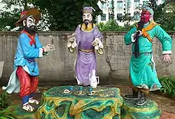 Statues of (from left) Zhang Fei, Liu Bei and Guan Yu at Haw Par Villa, Singapore