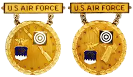 - ↑ Badge, Non-National Rifleman, United States Air Force, Badge, Pistol, Non-National United States Air Force, Badge, Rifleman, Non-National, United States Air Force, and Box, Presentation, Badge, Pistol, Non-National, United States Air Force; Smithsonian Institution's National Air and Space Museum; last accessed 8 September 2018