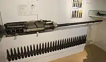The Oerlikon KCA is a Swiss 30 mm (1.181 in) gas-operated single-barrel revolver cannon developed for aircraft use. Its most noticeable use was on the JA 37 Viggen fighter[1] mounted in a conformal pod as the akan m/75. The KCA fires a 30 mm × 173 mm (1.181 in × 6.811 in) shell that is 50% heavier than the NATO standard ammunition used on ADEN and DEFA cannon. It can fire up to 1350 rounds per minute at a muzzle velocity of 1030 m/s, with an effective range of 2,500 m (8,200 ft)