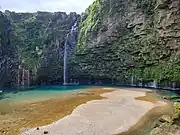Ogawa Falls (Japanese: 雄川の滝) is located in Minamiōsumi, Kagoshima, Japan, the town in the southern tip of the Osumi Peninsula. It is a 46-meter (151-foot) waterfall, 60 meters (197 feet) in extended width, in the midstream of the Ogawa River.