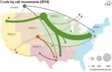 - ↑ Crude by rail accounts for more than half of East Coast refinery supply in February, Today in Energy, US EIA, 5 May 2015.