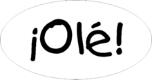 ¡Ole! or ¡olé! is a Spanish interjection used to cheer on or praise a performance, especially associated with the audience of bullfighting and flamenco dance. The word is also commonly used in many other contexts in Spain, and has become closely associated with the country; therefore it is often used outside Spain in cultural representation of the Spanish people.[1] In some Latin American countries, but not in Spain, it may be used as a term of mockery. In football, it can be used both as a form of mockery or encouragement depending on the context the word is used, and it is also frequently used as a football chant outside Spain as in "Olé, Olé, Olé".