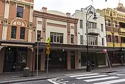 The form of early construction with a sandstone basement and three storey brick building. The sandstone retaining walls supporting the brick wall above indicate an important early method of construction. The later 1927 alterations to the building and the transformation of the facade into a modern style of the time.[1]